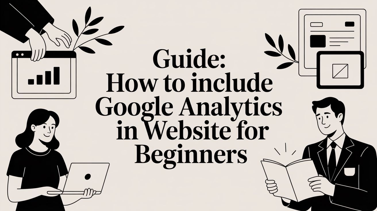 Running a business website without Google Analytics is like funding an ad campaign with your eyes closed. You're spending money, but you have no clue what’s working. The process for how to include Google Analytics in a website is straightforward—it comes down to adding a specific tracking code to your site or using a simple platform integration. Why Your Website Is Losing Money Without GA4 I see it all the time: businesses pouring thousands into Google Ads with zero data to back their decisions. They’re just burning cash. As a Google Ads consultant who lives and breathes this stuff, I can tell you the most common reason campaigns fail isn't bad ad copy or the wrong keywords. It’s a complete lack of performance data. Without Google Analytics 4 (GA4), you are flying blind. Big agencies love this confusion. They'll send you fluffy reports packed with vanity metrics like clicks and impressions, but they conveniently leave out which ad campaigns actually lead to sales. That’s because their junior account managers often don’t set up the foundational tracking needed to connect ad spend to revenue. This is where working with a dedicated specialist makes all the difference. My focus isn’t on billable hours or fancy reports; it’s on delivering a real, tangible Return on Ad Spend (ROAS) —that’s the revenue you earn for every dollar you spend on ads. And that always starts with a rock-solid GA4 installation. Stop Guessing and Start Measuring A proper GA4 setup is what moves you from guessing to knowing. It gives you the power to: Track the Full Customer Journey: See exactly how users interact with your site, from their very first click to the final purchase, even if they switch between their phone and computer. Identify Your Most Valuable Channels: Finally discover whether your best customers are coming from Google Ads, organic search, or social media. Optimize for Actual Conversions: Make data-driven decisions to improve your campaigns based on what truly drives sales and leads, not just meaningless traffic. To help you get started, here's a quick comparison of the main installation methods. This table should make it easy to see which path fits your situation best. Choosing Your Google Analytics Installation Method Method Best For Technical Skill Key Advantage Direct GA4 Tag Simple websites, blogs, or those wanting a quick, basic setup. Low The fastest and most direct way to start collecting data. Google Tag Manager Businesses running multiple ad platforms or needing complex event tracking. Medium Centralizes all tracking scripts; highly flexible and scalable. CMS/Plugin Users on platforms like WordPress, Shopify, or Wix. Very Low No-code solution that often takes just a few clicks. Each of these methods is a valid way to get tracking in place. The right choice just depends on your site's complexity and your comfort level with the technical side of things. This decision tree also breaks down which installation path is right for you, depending on whether you're a hands-on owner or have developer support. The key takeaway here is that every business has a path to get this done. There's no excuse for inaction. This guide will walk you through each method, cutting out the agency fluff and giving you the actionable advice you need to finally make every ad dollar accountable. Once you have this data, you'll be ready for the next step. To get a head start, check out our guide on how to analyze website traffic for better results . The Direct Install: Adding GA4 Code to Your Website Manually Sometimes, the most direct path is the best one. If you prefer a clean setup without relying on a dozen plugins, adding the Google Analytics 4 tracking code directly into your site’s HTML is the way to go. This method gives you complete control. You know exactly what code is running on your site, with no extra layers to slow things down or break. It's my go-to for straightforward websites, especially if you're comfortable peeking at a little code or have a developer handy. Flying blind with your marketing budget is stressful. You're spending money, but you have no real idea what’s actually driving sales or leads. It’s a fast track to financial anxiety. Manually installing GA4 is the first step to fixing this. It gives you the raw data you need to stop gambling with your ad spend and start making decisions that actually grow your bottom line. Finding Your GA4 Tracking Code First things first, you need to grab your unique GA4 global site tag, also known as gtag.js . This little snippet of JavaScript is what connects your website to Google Analytics, telling it to start tracking visitors. Here’s where to find it in your Google Analytics account: Click the Admin gear icon in the bottom-left corner. Under the Property column, make sure you've selected the right GA4 property. Go to Data Streams and click on your web data stream. Find the Google tag section and click Configure tag settings . From there, click Installation instructions . You'll see a tab labeled "Install manually"—that’s where your code snippet lives. The code will contain your unique Measurement ID , which looks something like . This ID is critical; it tells Google to send all the data from your site directly to your GA4 property. A Quick Word of Warning: Treat your Measurement ID and the entire tracking code like a password. If it gets out, someone could send a flood of spam traffic to your analytics account, completely trashing your data and making it useless for decision-making. Placing the Code in Your Website’s Head Now that you have the code, you need to paste it onto every single page of your website. The right place for it is inside the section of your site's HTML. Putting it here ensures the script loads as early as possible, so you don’t miss any visitor data. How you actually get to the section depends entirely on how your site is built. On a simple HTML site , you'll likely edit the header file directly. On WordP